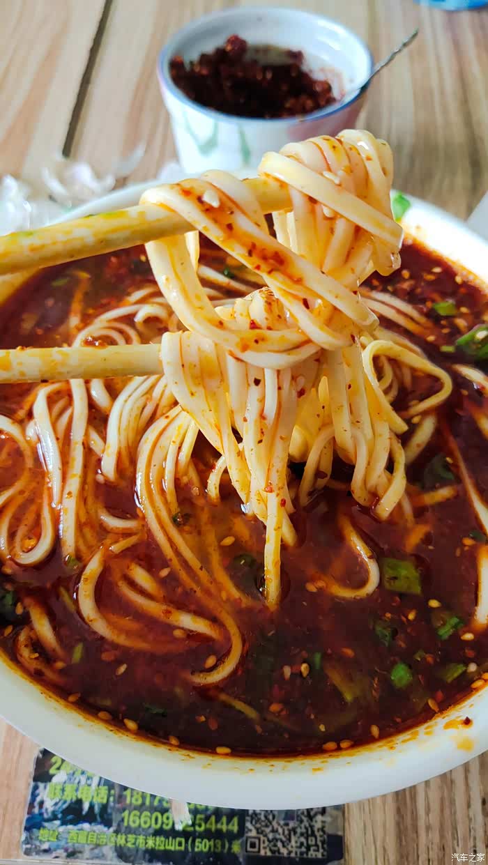 说实话,林拉高速的路况太好了。开着开着都能让我睡着了。我们在跑了一段距离后,我感觉应该是到填饱肚子的时候了。但是因为高速服务区里面的餐厅都是关闭的。所以我决定下高速。找一个可以吃饭的地方。