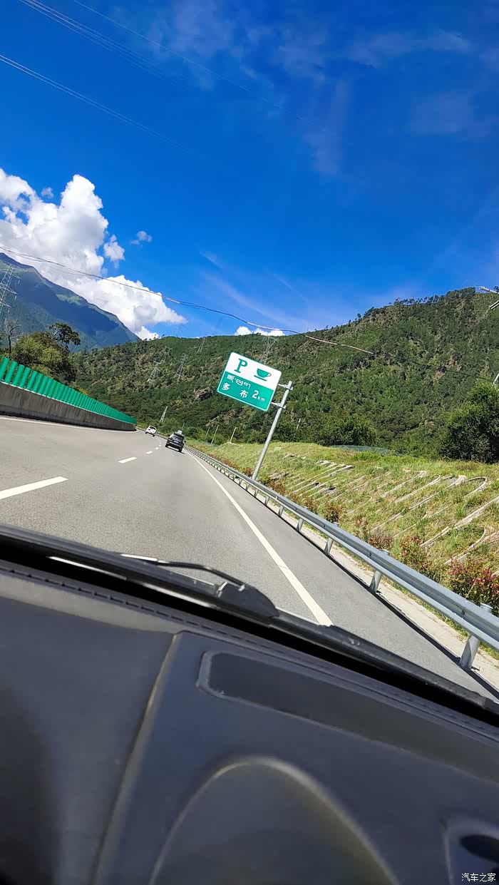 这里的服务区非常的大,而且也非常的干净,并且有一个最大的好处就是林芝前往拉萨的高速公路是完全免费的。所以大家在安全时速内可以放开跑。林拉高速和国道是并行的,如果大家觉得高速没有风景的话,其实也可以走旁边的国道。不过相对于高速的话,国道有很多盘山路高速比较直。