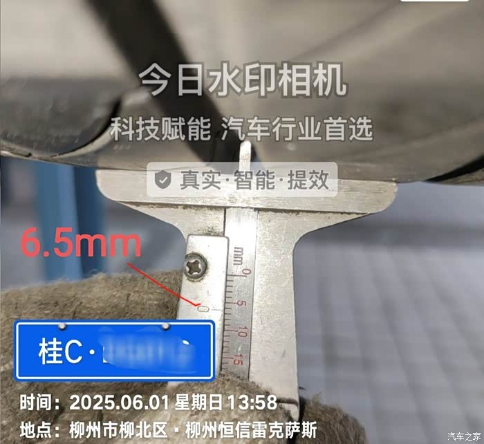 测量4轮胎磨损,平均胎沟深为6-7mm,情况良好