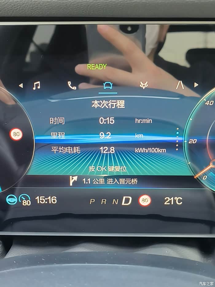 跑到9公里多,电耗降到了12.8度电/百公里