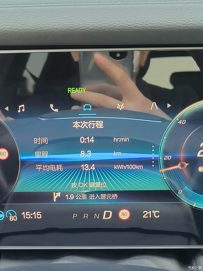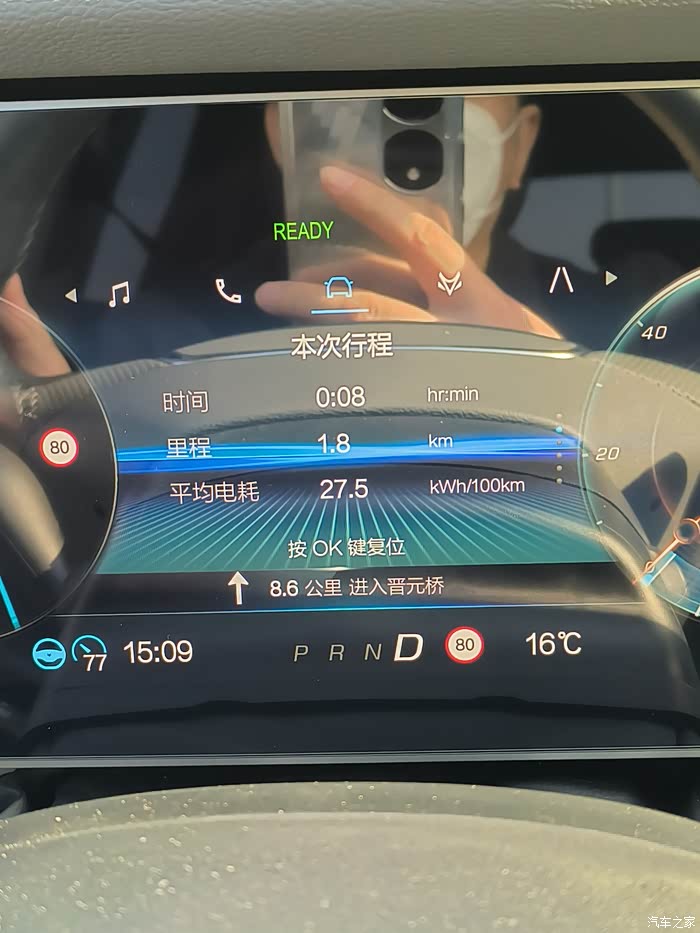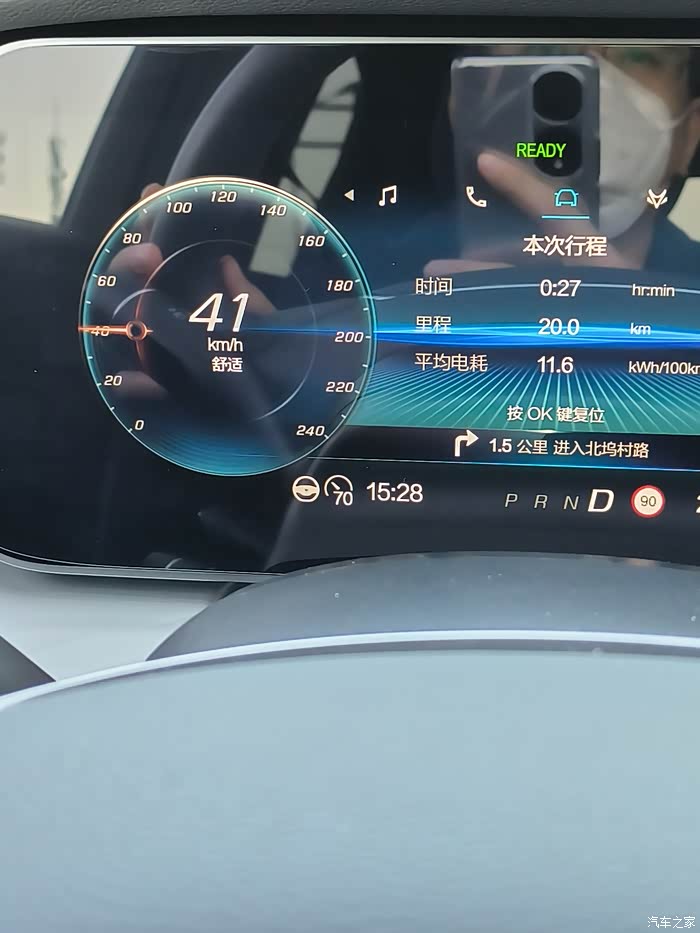 走到1公里多后,电耗显示出来了,27.5度电/百公里。不小啊。