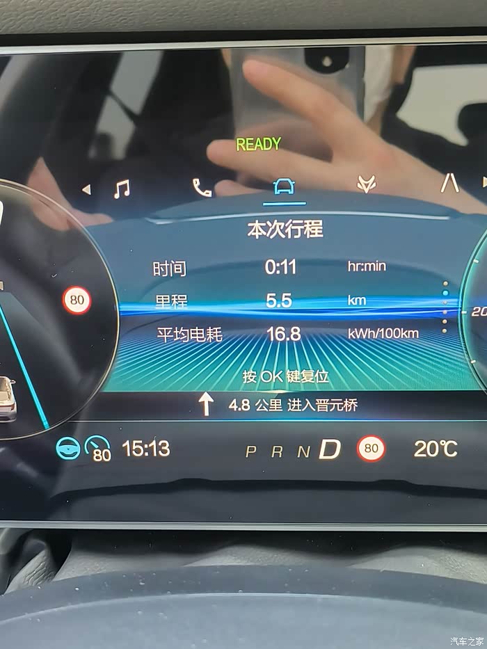 跑到5公里多,电耗降到了16.8度电/百公里。