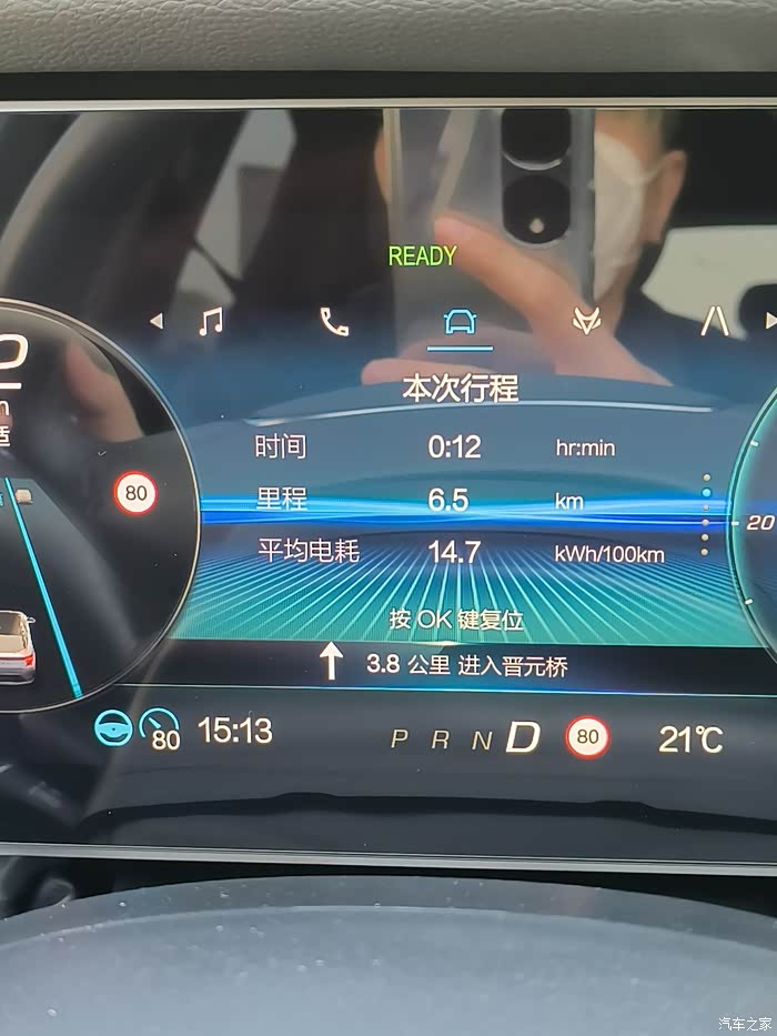 跑到6公里多,电耗降到了14.7度电/百公里