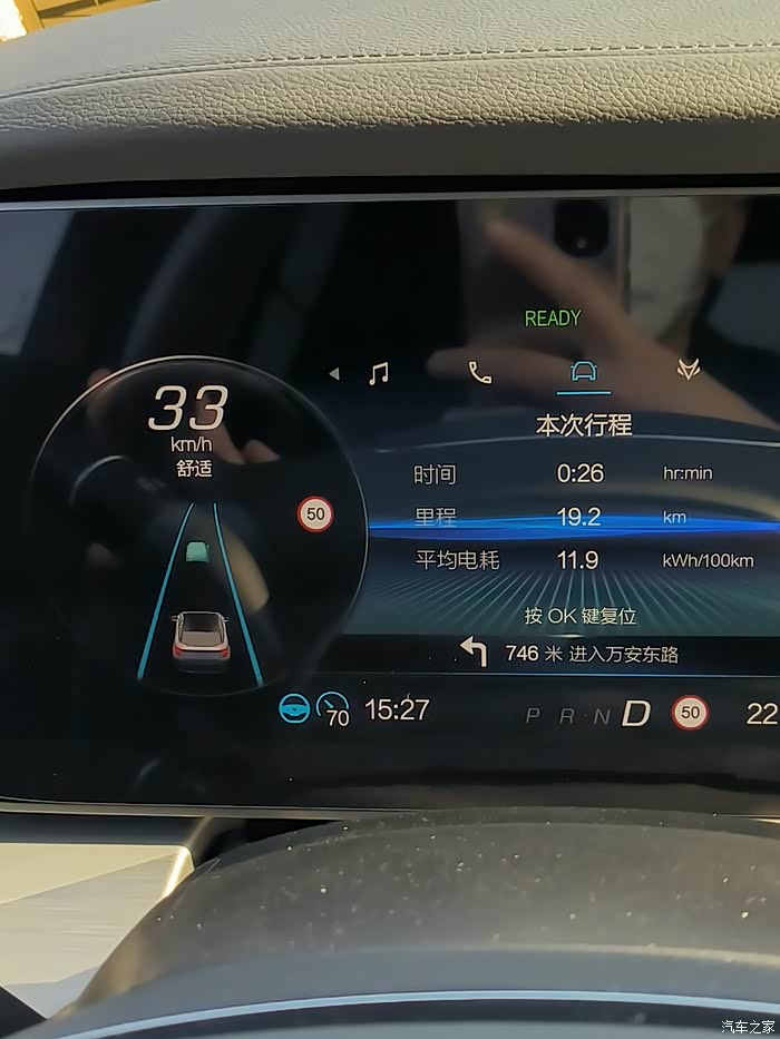 跑到19公里多,电耗降到了11.9度电/百公里。此时是人工驾驶,时速50。