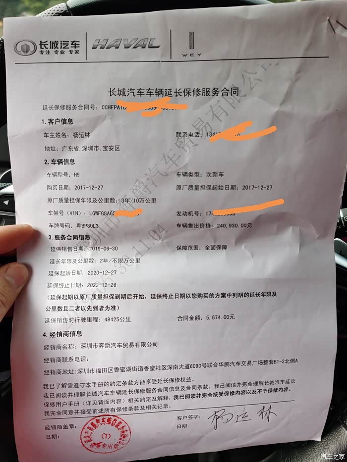 2017年12月27日购买的哈佛h9,也就是17款豪华7坐版本。到现在都属于质保期,并且也购买了延保。