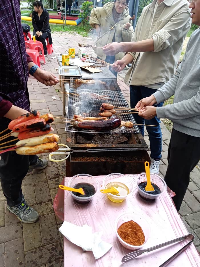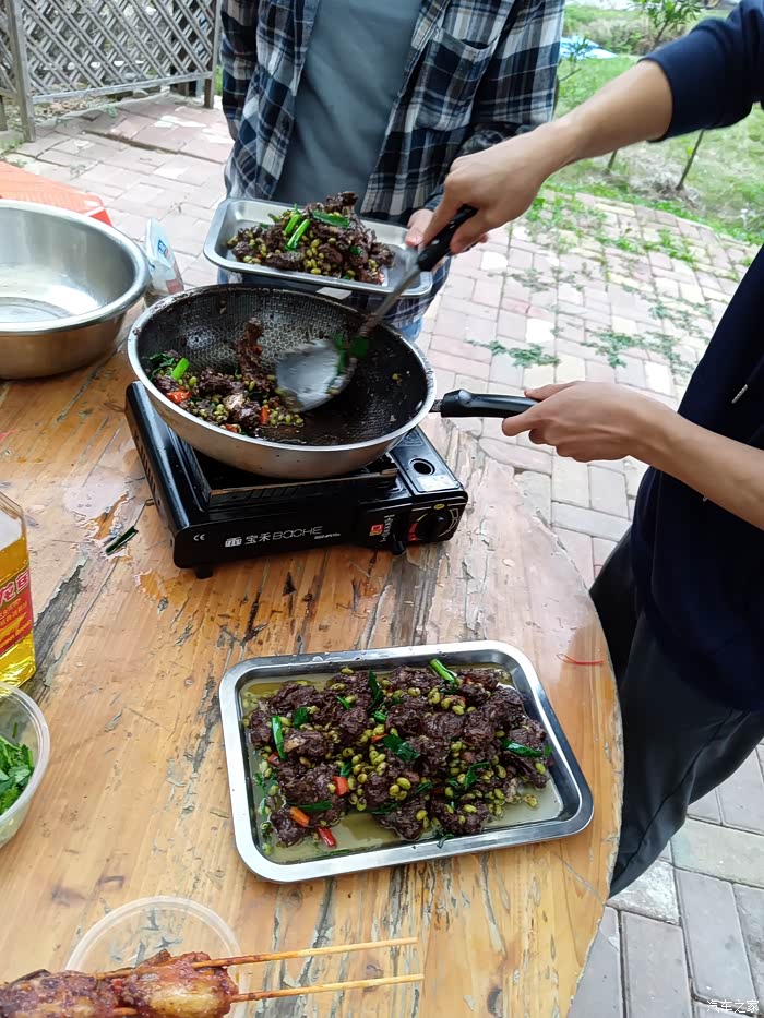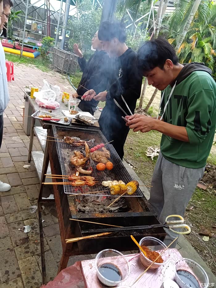 大家都放下了手机,积极的做准备烧烤,洗菜切菜聊天