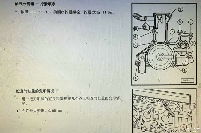 油气分离器,大家都换过,如果不按规定力矩紧,过松容易漏油气,过紧下次拆装时铝合金材质的气门室盖容易滑丝喔。谨记。