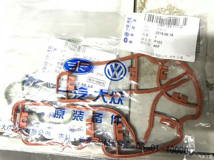 进气歧管密封垫,一般市场上能找到的都不是原厂件。橡胶材质和原厂的比差点点。所以使用寿命短。更换此密封圈时,进气歧管必须要按规定力矩紧固。松则漏气,发动机抖,过紧下次拆装时就惨了,铝缸盖的丝牙就滑了。但可以用加长螺丝或镶丝套处理。