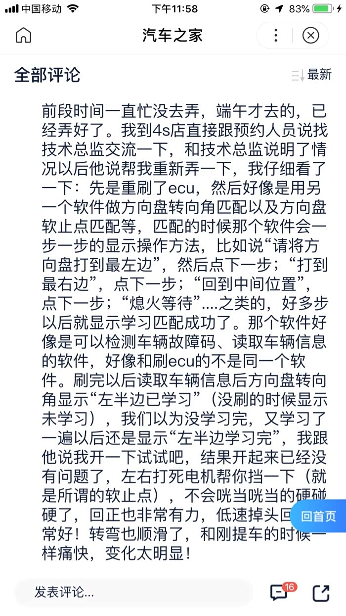 新车500公里的时候断电加装过无钥匙进入。现在是低速转向对比刚提车时候重了不少。排除机械故障,应该是软件问题给的。猜测就是车速传感器和扭矩传感器计算要提供的助力扭矩不正确。所以我百度了一下,因为