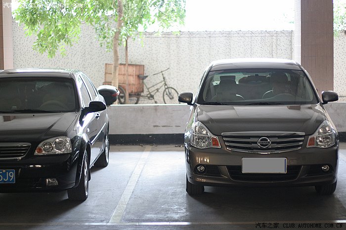左边是凯越,右边是新君威。车位还是比较宽地,轩轩还是比较窄地。。:(