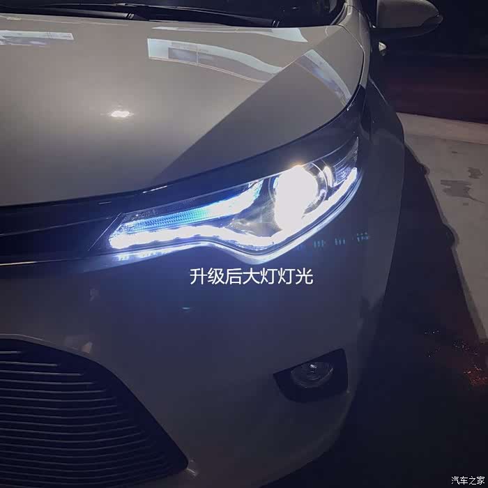 我是车子是丰田雷凌,车子买来也有?年?了,刚买的时候晚?也不怎么开的,现在经常番禺从化两边跑,晚?车灯好暗啊!好像看不到路?样,好危险。?定要把车灯换掉,就在百度论坛那些看看人家是怎么换的,在群里听说汽车之家的车主都不会瞎说,原车论坛里面也有很?车主在讨论车灯不亮,看到有的说换灯泡,有的说改透镜,好?好?的评论,了解了几天,很?都是说改透镜效果好,在论坛?看到在广州番禺有?家改灯店很专业的,于是就咨询了客服。加了她微信看到她朋友圈改了好?啊,下午就去她店里看了效果,对比过确实很好,就改了,这些图片是改完以后我从客服那里找到,真心觉?挺好的
