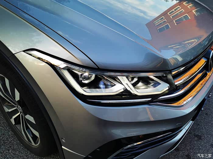 外观方面途观L的设计与传统的大众设计更为不一,整个车头看着非常的霸气,清晰的线条感勾勒出出众的视觉效果。途观L的前脸是由两根镀铬条装饰,连接着两侧两颗炯炯有神的大灯,给我们一种非常不一样的效果,侧面的车身线条非常立体,侧面还有一条镀铬条装饰点缀给这个黑色的车身增加不一样的效果,尾部稍微做得有点小溜背的设计,下方的装饰的四出排气也是精致。