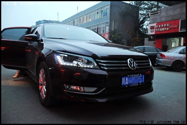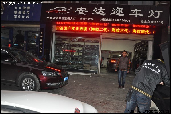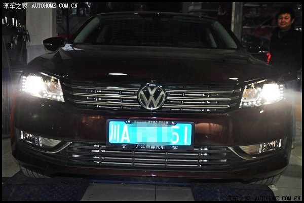 新帕车购了快三个月了,经常夜间开高速和一些乡村小道,真心感觉车灯极不给力,有几次差车灯太暗差点出交通事故,就寻思着把车灯改一下升个级,(在得到媳妇领导同意的情况下)就在汽车之家论坛里学习一下关于车灯方面的知识,也到成都一些专业改车灯的实体店认真详细的了解,了解的信息非常多也就慢慢成了半个专业人士了,综合他们的信息才发觉改车灯学问有点多,特别是大众车因为代中央电脑控制系统改得不好会出问题(我是最怕出问题的了),又问4S店的专业技师改车灯对车有没有影响,在得到4S店技师答复之后(不管改什么不能动原车任何线路,必须用行车电脑打开双氙车灯模式)才敢下手,决定周末又到成都一条专业改车的一条街(说实在的这条街改车的真多专业不专业,大店小店多如牛毛)找了几家有实力的专业车改装店实体在一一的对比,可能是运气不错刚好找的这家店也有一台新帕在改,还有几台别的车在改车灯,更加心里有底找这家改车灯店是正确的.