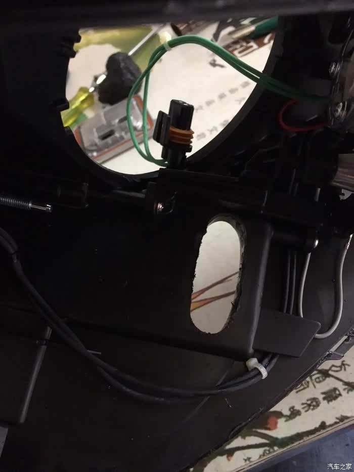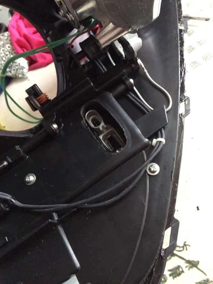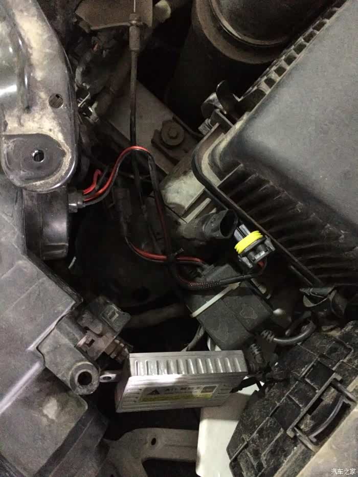 而我有更完美的办法来解决这个问题,在保险丝盒子的一个插头上,一个电线搭铁,,开启原厂氙气灯模式,无需线组负载,机舱清爽干净,没有半根多余的线束拉出来。既稳定,又美观。完美开启原厂氙气模式,