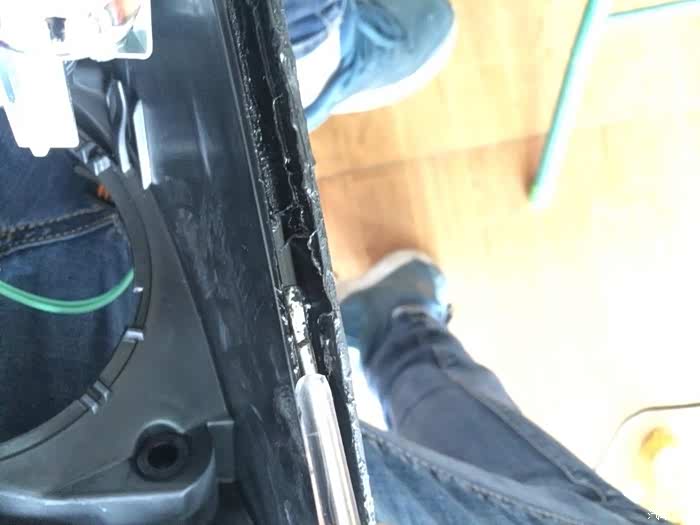 下面趁热开始除胶,原来的胶必须要清理干净,方便待会封灯,不敢干净,封灯封不住,会漏水,这是个细心活,时间熬出来的