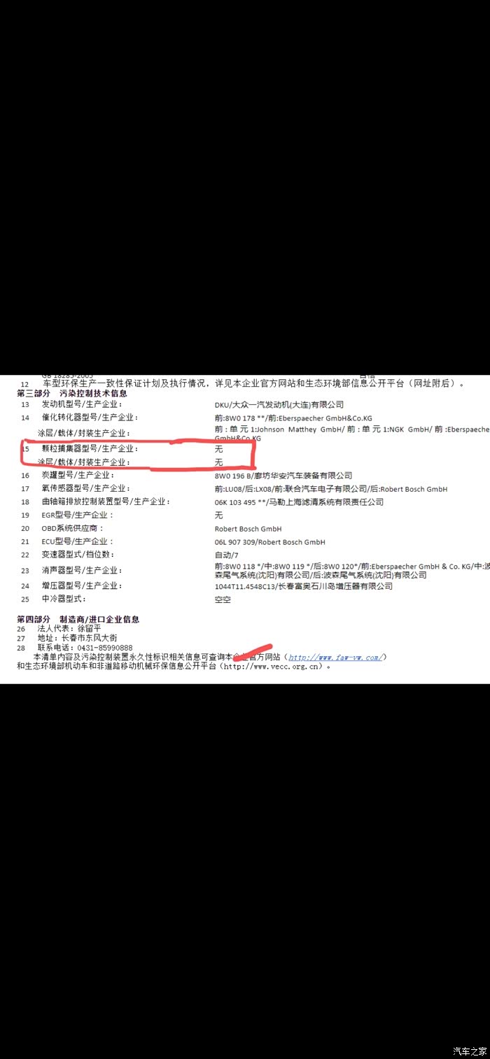 19款a4l,环保网站查询虽然写的是国六b,但是没有没有颗粒扑捉器(图1)
