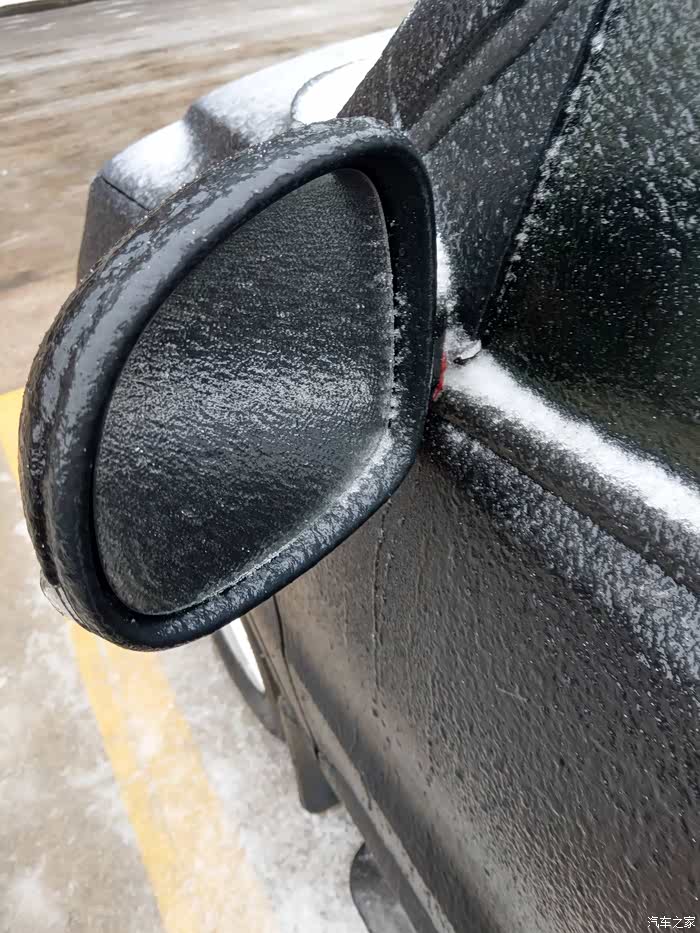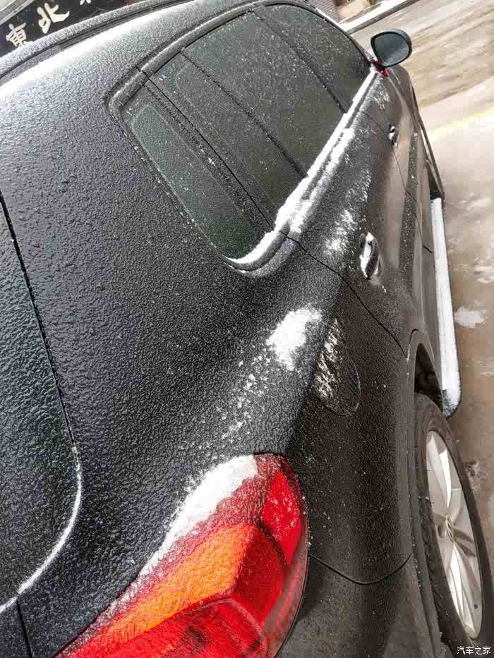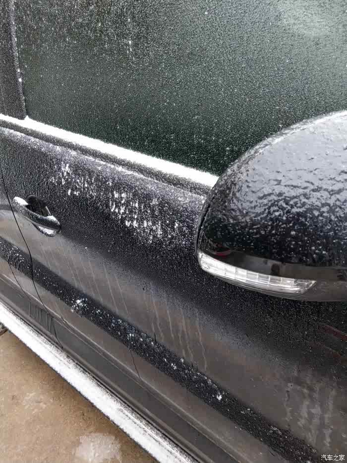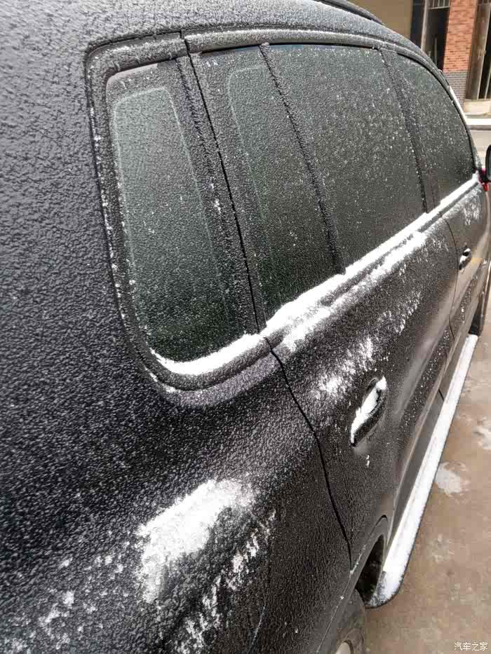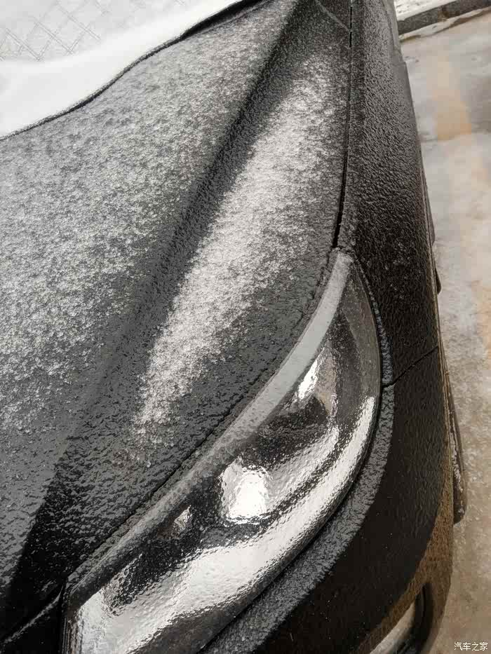 被冻雪盖一天后启动车子出去溜达了一圈,回来后第二天有冻条了