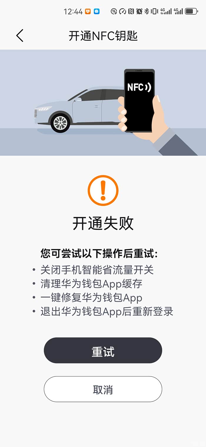 我的NFC钥匙开通不了,是怎么回事?