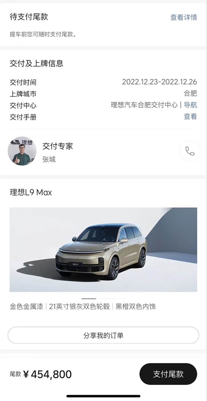 合肥转理想L9订单 12月底提车