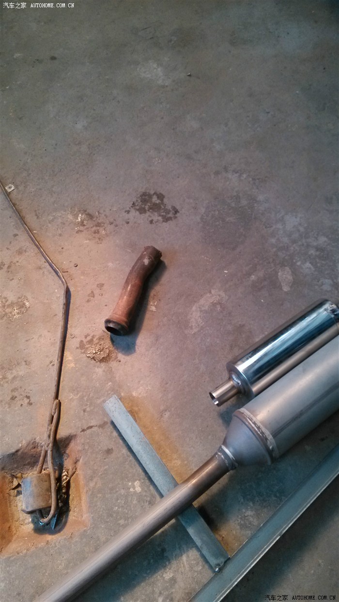 车加速有异响,经过有路基的地方声音更明显,到4S检查,消声器里面的不知道什么东西脱落了,要换,550+。没换,上网买了辰辰之前说的那个···188包邮,到维修厂换人工120(为什么这么贵?不是只要几十块吗?后面会说),一共308。下面开始上图说话····························(此处应有掌声)