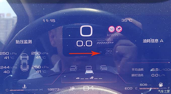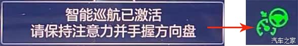 巡航激活后仪表盘会有温馨提示,然后原来灰白色的标变成了绿色,这时候小伙伴们就可以松开油门踏板了