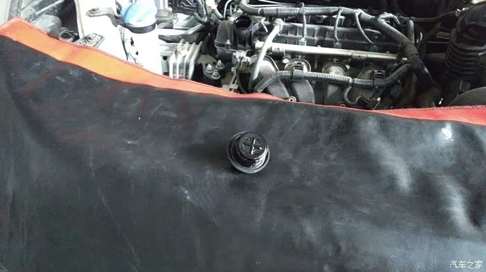 这是打开的机油盖子,很干净的。之前刚买没多久时(好像在11月份)发现机油盖子上有白色的奶状物。后来又看过几次再没发现。估计和驾驶习惯有关,有朋友说是因为经常跑短途的原因造成的。