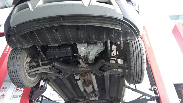 第一次看见车车的裙底,还是很干净的。没有装发动机防护板,后面那截的排气管吊的怎么那么低呢
