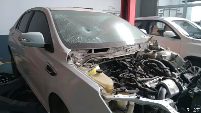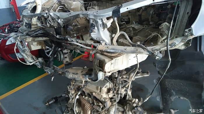这个是左侧的事故车辆,防撞梁都不成样子了