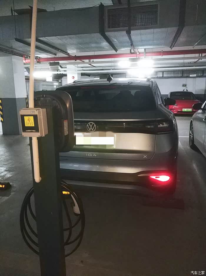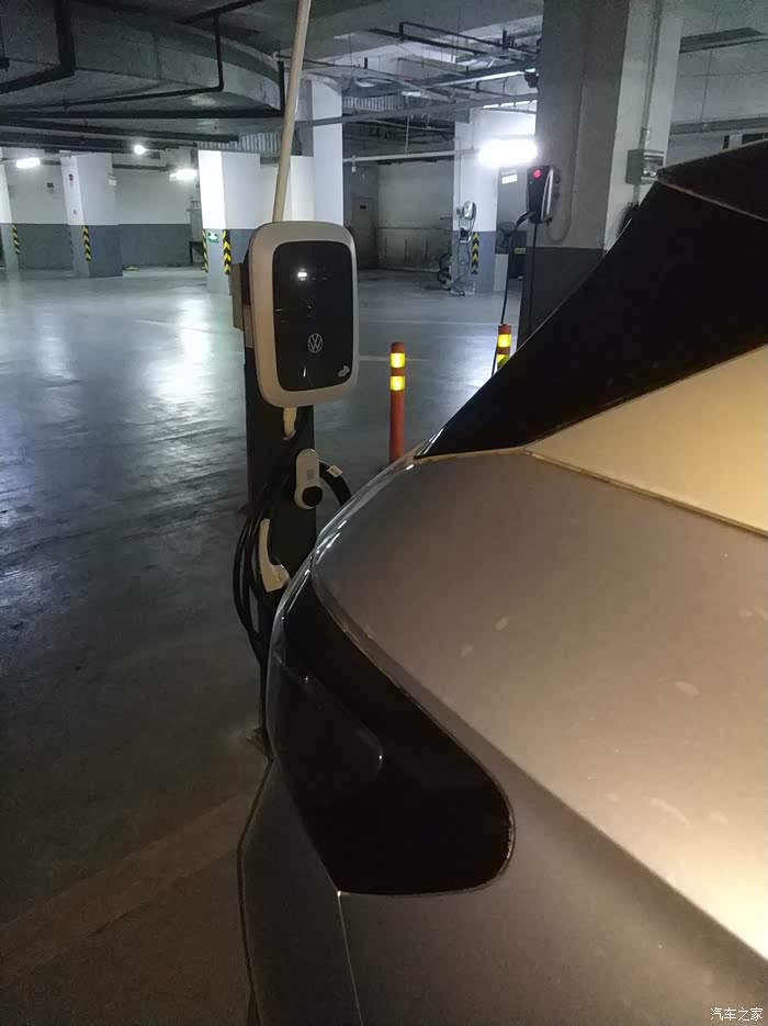 >首先可以看到安装师傅给我安装了充电立柱,并在我的充电立柱上安装了充电底托,然后把我的充电墙盒安了上去,并进行了必要的加固。