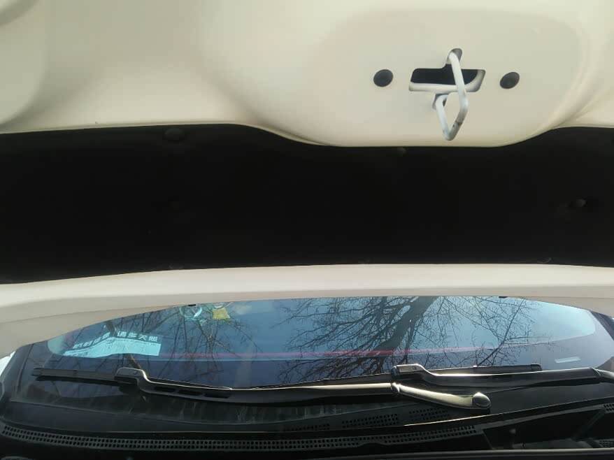 前机盖真沉呀两个手才打开它做工真厚道还带着隔音层板。盖上前机盖几乎听不到发动机的运动声音。