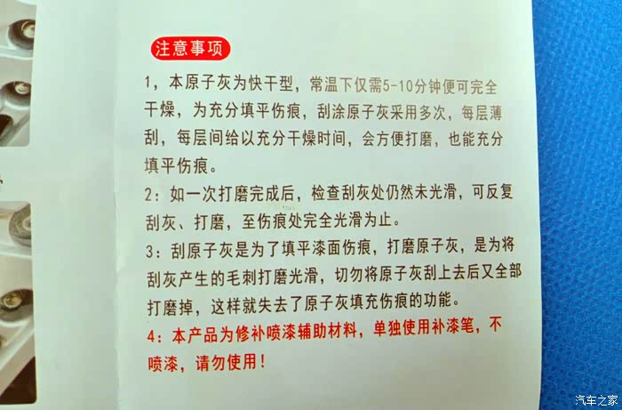 上周末,高温4℃,好天气!那就开始动手吧!在补之前还特意联系了t宝卖家仔细腻子粉的用法,结果没用上,其他的步骤自己看说明就搞定了。