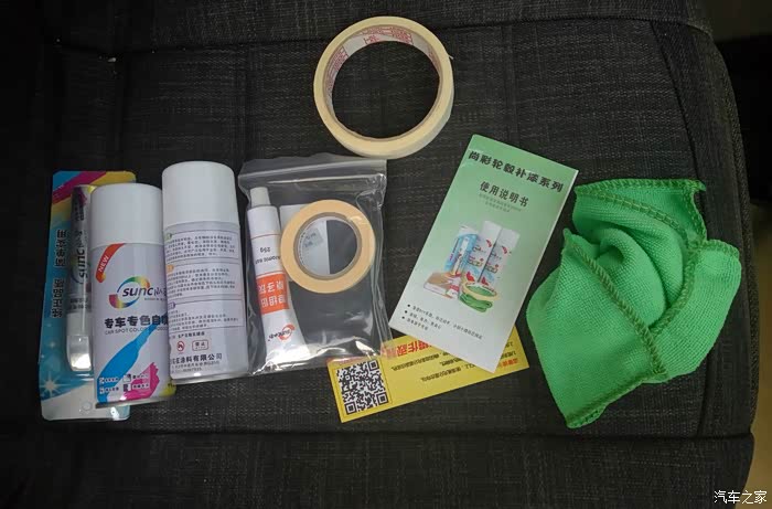 15年 12月的某日把副驾驶边后轮的轮毂漆蹭了一点,一直想补一下,前些天在t宝上买了一套补漆材料,准备找一个好天气补补。