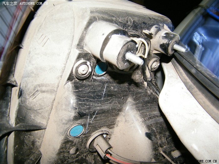 3、将右上角固定灯组的四个螺母取下。