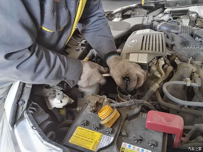 保养第三步,等旧机油重力自流放空之后,拧紧封堵螺栓。
