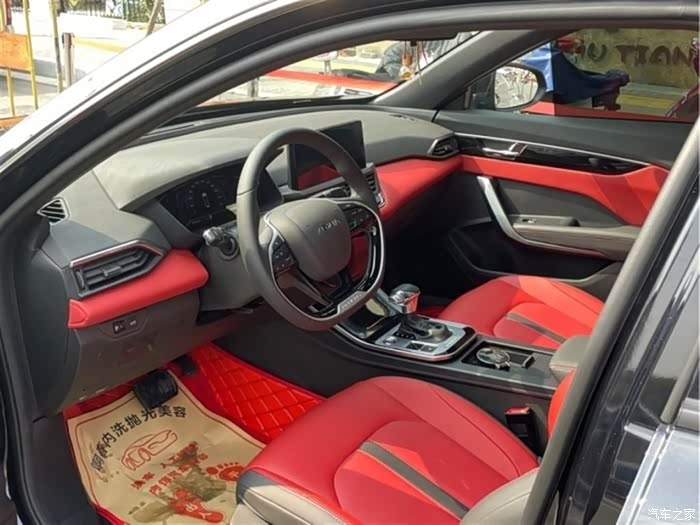 虽然没有选红色的车子,红色的内饰看着也是运动感十足,非常的漂亮