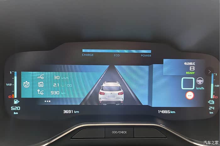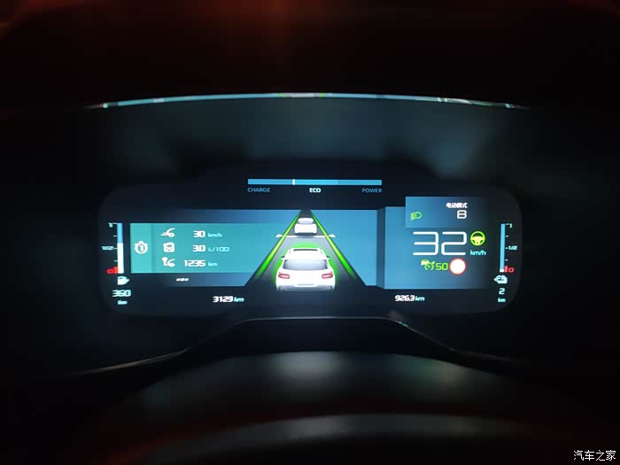 可能是为了响应国家对新能源政策的号召吧,混动模式下也是优先用电,起步用电就不用说了,在电量充足的情况,车速差不多要到80KM/h之后才会切换成发动机工作,发动机介入时并不突兀,甚至很难感觉出来,这个我会在下个环节再作介绍。当电量比较低的时候,可能在车速40KM/h时发动机就会介入。完全亏电的状态下,也许20KM/h的车速时,发动机就介入了。所以总结下来,这套混动的逻辑就是:优先用电,电量越少,发动机介入越早,电量越足,发动机介入越晚。