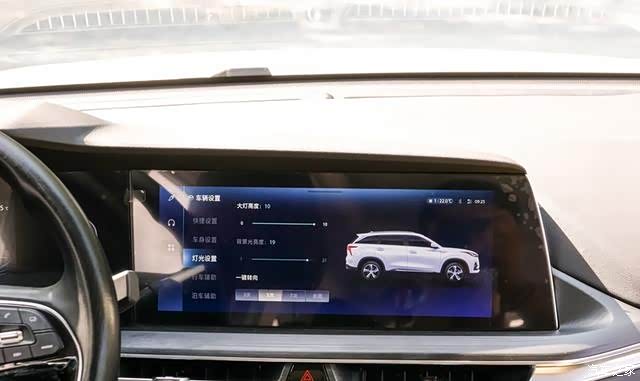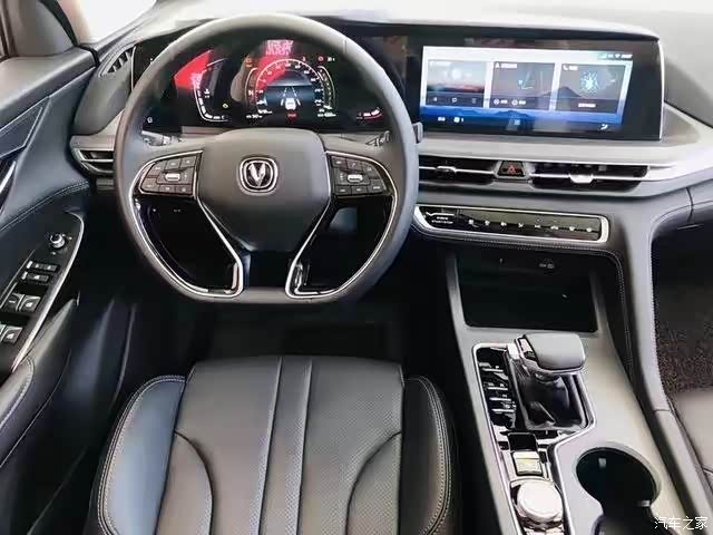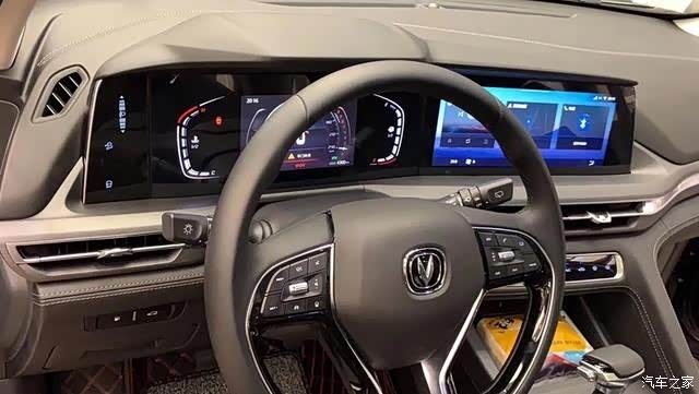 内饰看上去比较的精致奢华,中控和仪表盘一起的那块大屏科技感十足。