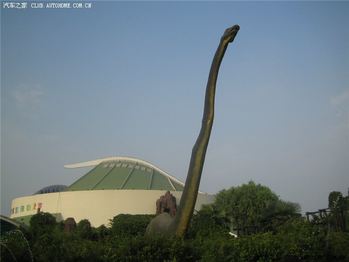 作为恐龙园的标志性建筑物,中华恐龙馆的馆体外形充分运用仿生建筑手法,远远望去仿佛三条恐龙高昂着龙头在窃窃私语,一条丰盈巨硕的恐龙躯体呈现出大写意的造型,由此勾勒出恐龙馆的博览、娱乐及科普空间,全馆总面积20000平方米以上,龙首最高处达71米,馆体穹顶最高处达36米。