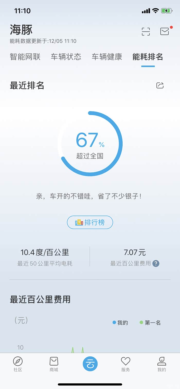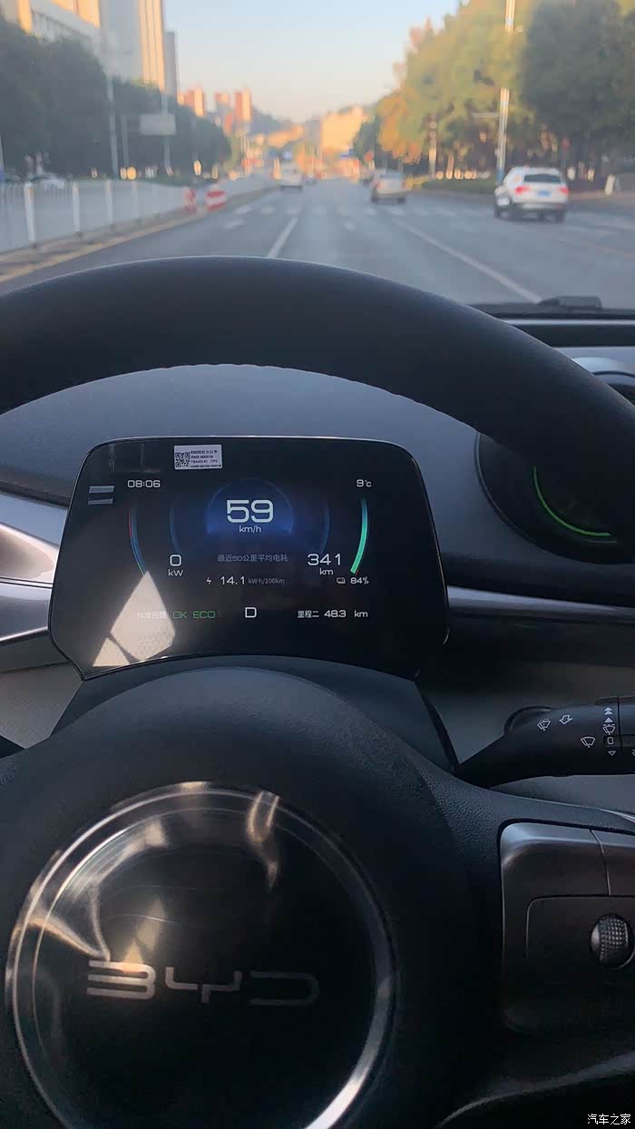最重要的放在最后,长沙早上气温5度左右,下班回家13度左右,能明显感受到早晚温差带来的续航变化。城际干道大致是七八十速度,开空调,开音乐,回收力度调成普通(忘记那个专业名词了)跑48公里,掉里程60左右,下班回家跑48公里,掉里程42公里左右。所以综合100公里基本上没有太多水分,充满电能跑388样子,不知道冬天具体续航如何,估计也在320以上,够可以啦!