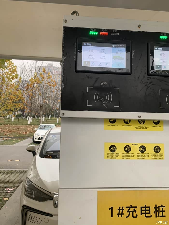 没上牌,无法安装充电桩,回来第一时间在外面补电。