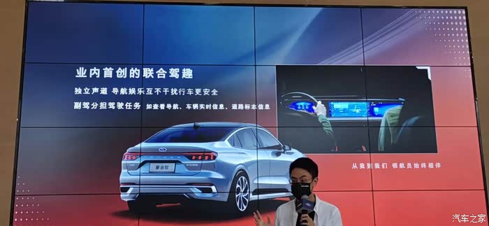 从我体验感受来说,我喜欢它的联合驾趣功能,副驾的人可以帮驾驶员看天气,设置导航,查看车辆信息等等,设置好导航后通过三指滑屏就能滑到中控屏,实在太智能了。据说内置的SYNC+系统升级到了2.0版本,不仅能辨识70多种模糊语义,而且上面还有面部识别、手势识别等高科技功能,确实很洋气哈。