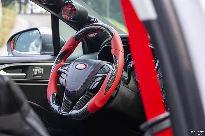 车内还有红色的饰条,搭配7色氛围灯,晚上估计更好看。