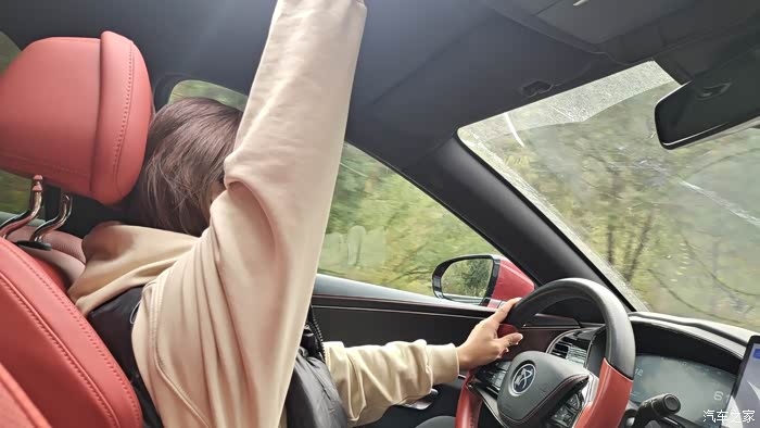 秋景拍照的效果很好呀!哈哈哈,从这也看出来汉汉的天窗真是够大的,我俩都能从天窗钻出来拍照