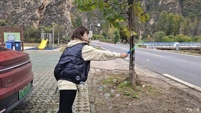 买来了,就迫不及待的玩上了,待会我开车,她在天窗上吹泡泡,哈哈哈