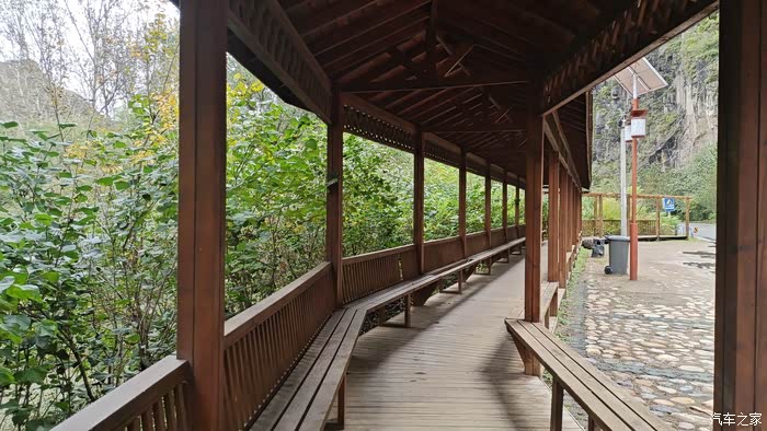 长亭,可能很久没有人来维修,有的地方的坐凳已经断了,开车累了,在这里休息一下不错!