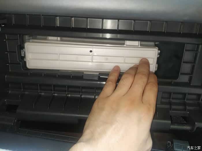 首先空调滤芯在这个副驾驶位置的工具箱里面