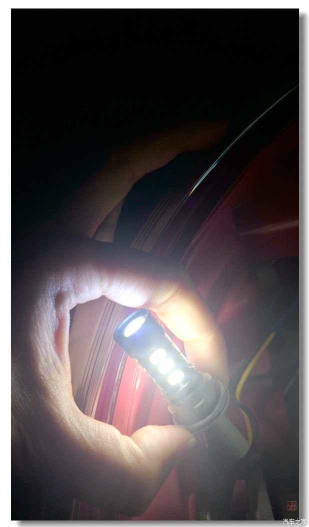 扭开倒车灯,换上“流氓”倒车灯,注意:所有的LED都是有极向的,如果试用不亮,换个极向就可以了!