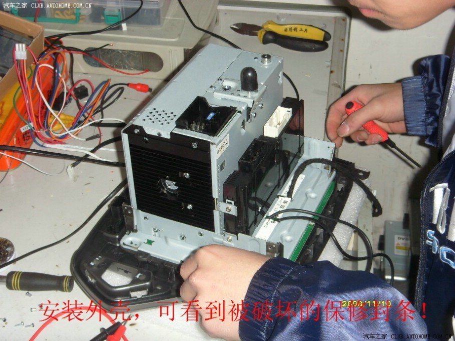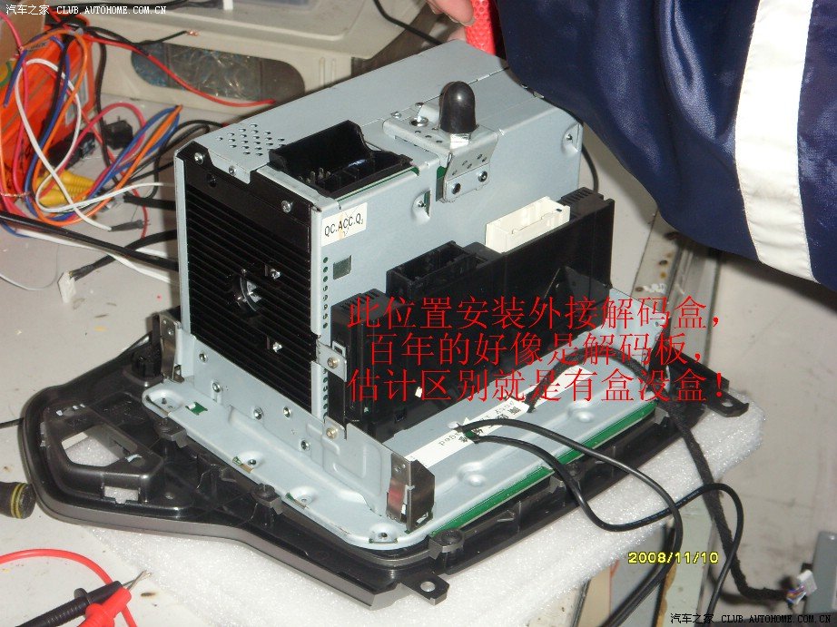 新车到手不到2周,就琢磨着想装个导航,在论坛里左右权衡之下,还是去了草桥那家,毕竟是实体店!整体感觉还不错,比较专业,就是干活的细致程度还需提高(可能装的太多了,麻木了,呵呵)!以下把装导航的图片发出来,供大家参考!提醒几点:1、心里承受能力有限的不要装;2、对车爱惜如命的不要装;3、装的时候不要带老婆去!!!图片可能放反了,不要见笑!导航和数字电视非常清楚,致胜屏幕分辨率还是不错的,想装的不必犹豫,该出手时就出手!