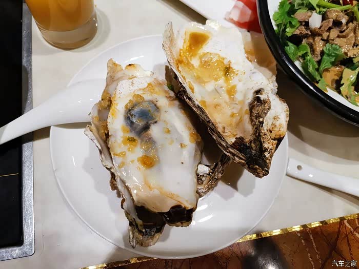 烤生蚝,上桌,一人先来两只,给大家看看我吃完的,哈哈。