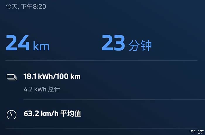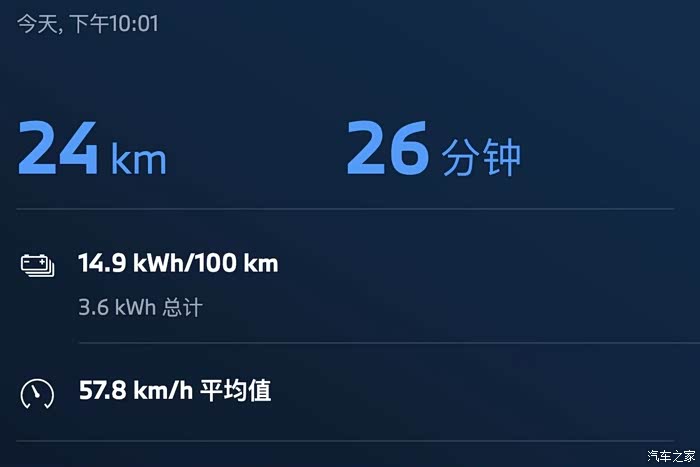 2. 打开AC,同样外环+中环24公里,平均车速和用时一致,百公里电耗18.1